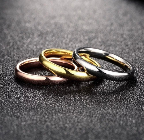These simple three-piece stainless steel stackable rings come in silver, gold, and rose gold. They have a comfortable fit and can be enjoyed with multiple uses by creating a stackable look with other similar rings.